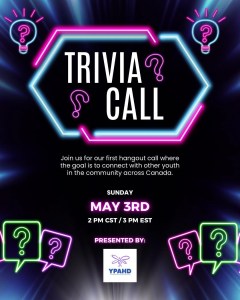 The Executive hosts a monthly drop-in virtual hangout for youth ages 14-35 to connect and form relationships with others affected by HD. These calls are generally a casual opportunity to hang out while playing virtual games or general chit chat. Visit us on social media to learn about our next drop-in.
